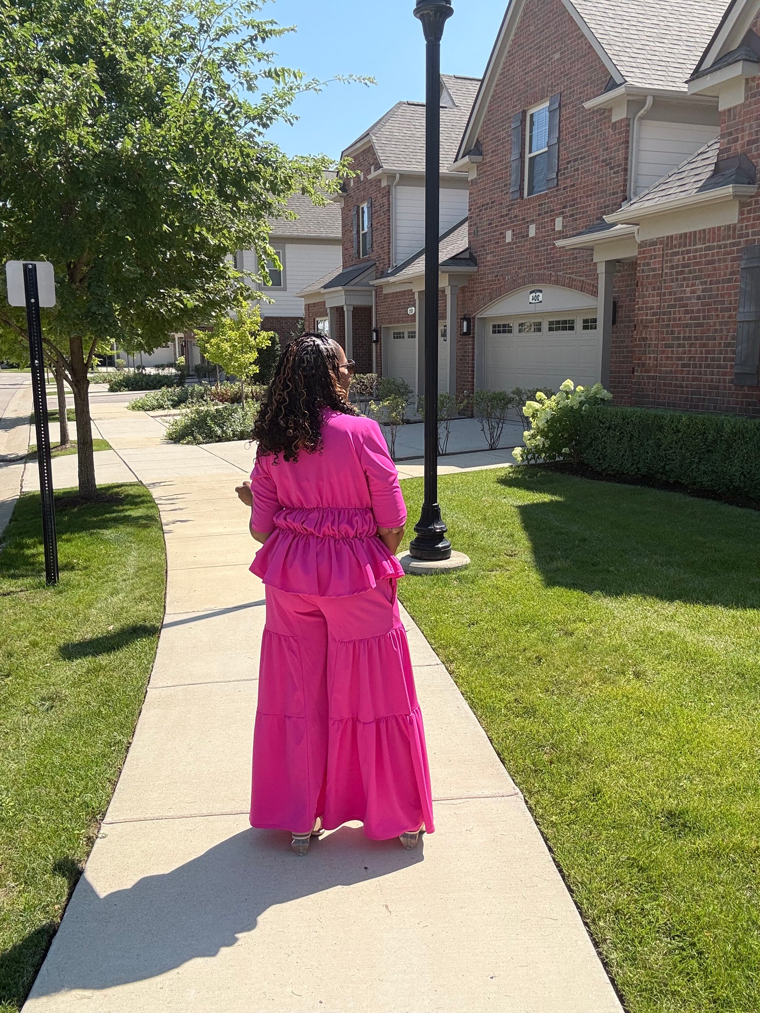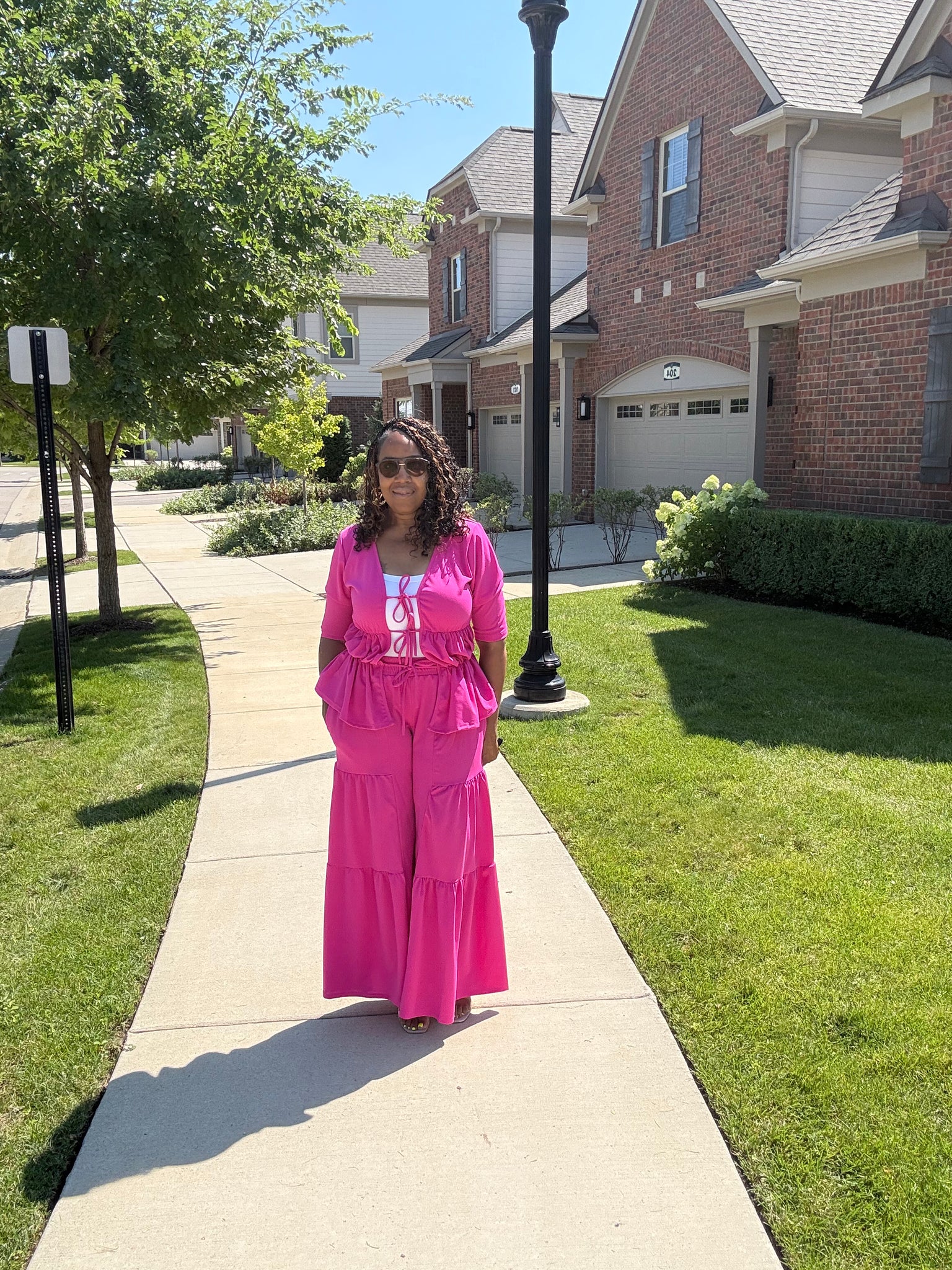 2 pc Pant Set with matching jacket .True to size. Elastic in waist ,Wide leg pant and pockets